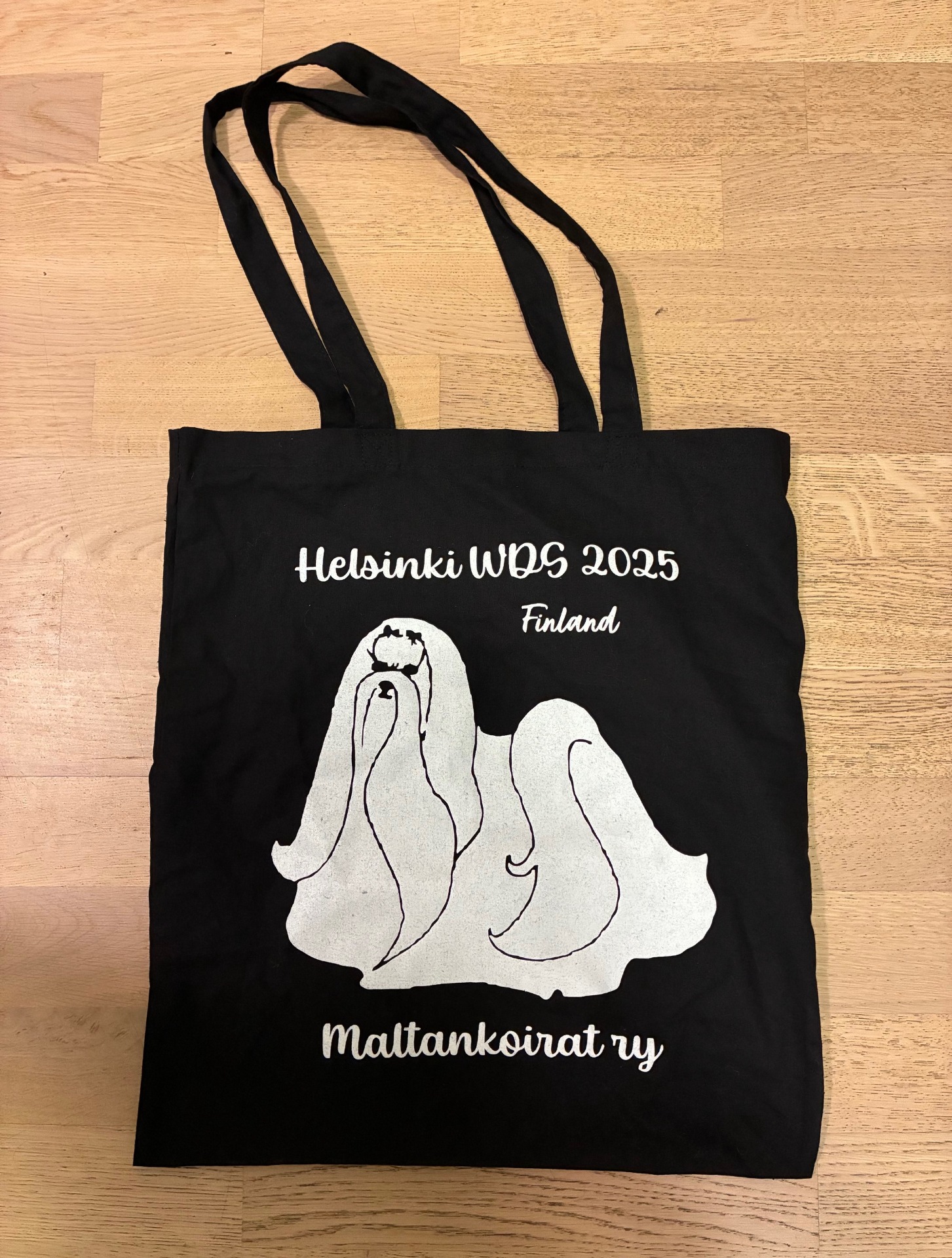 Nyt sinäkin voit ostaa itsellesi Maltankoirat ry:n oman World Dog Show 2025 -kassin! Musta kassi on 100% puuvillaa, ja se sopii olalla kannettavaksi. Koko n.38x41cm, logo valkoisella painatuksella.